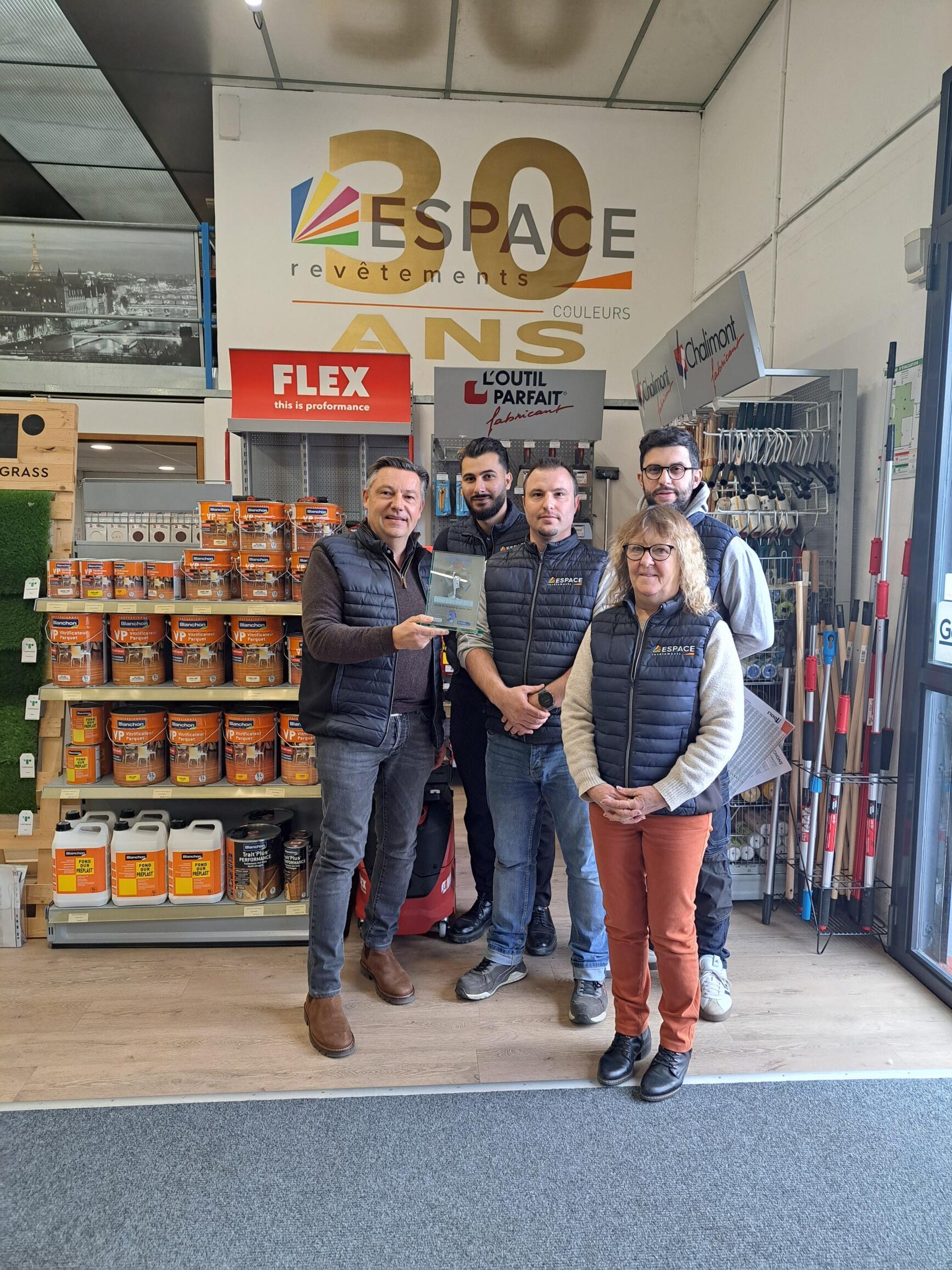 Couleurs Colmar - Espace Revêtements est fier d'avoir remporté le trophée Diamant catégorie "Qualité accueil et service client du Label Commerçant d'Alsace 2025"